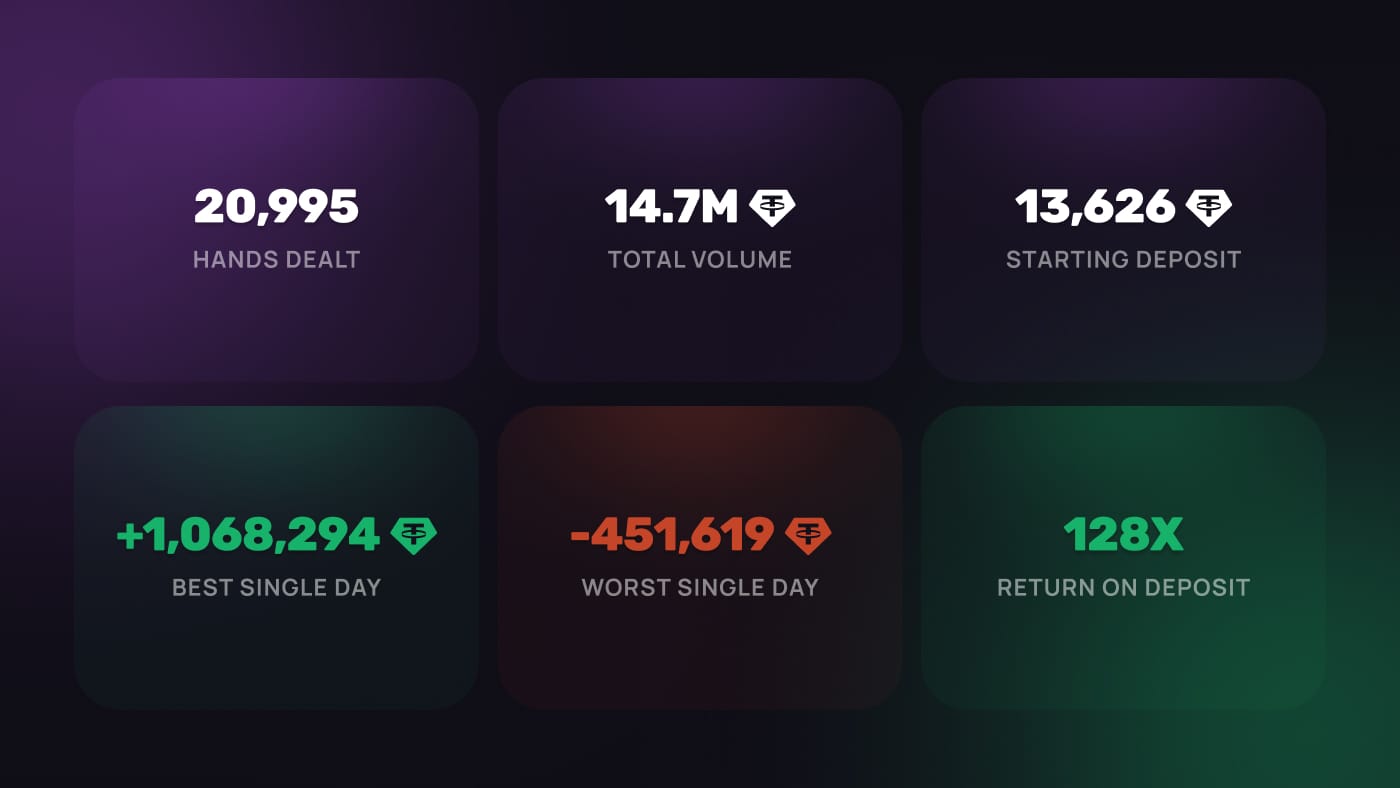 Date | Net Results (USDT) | Hands |